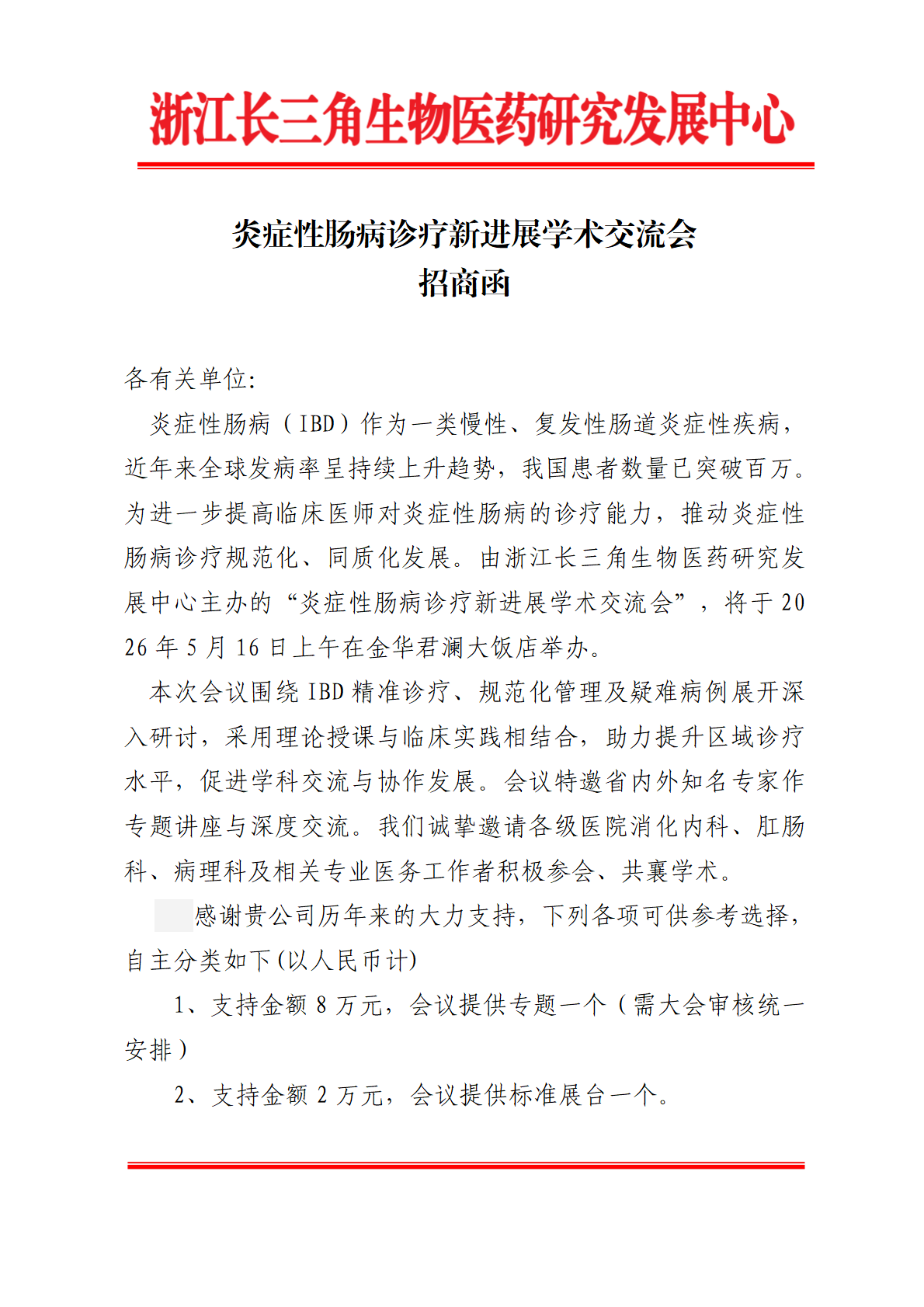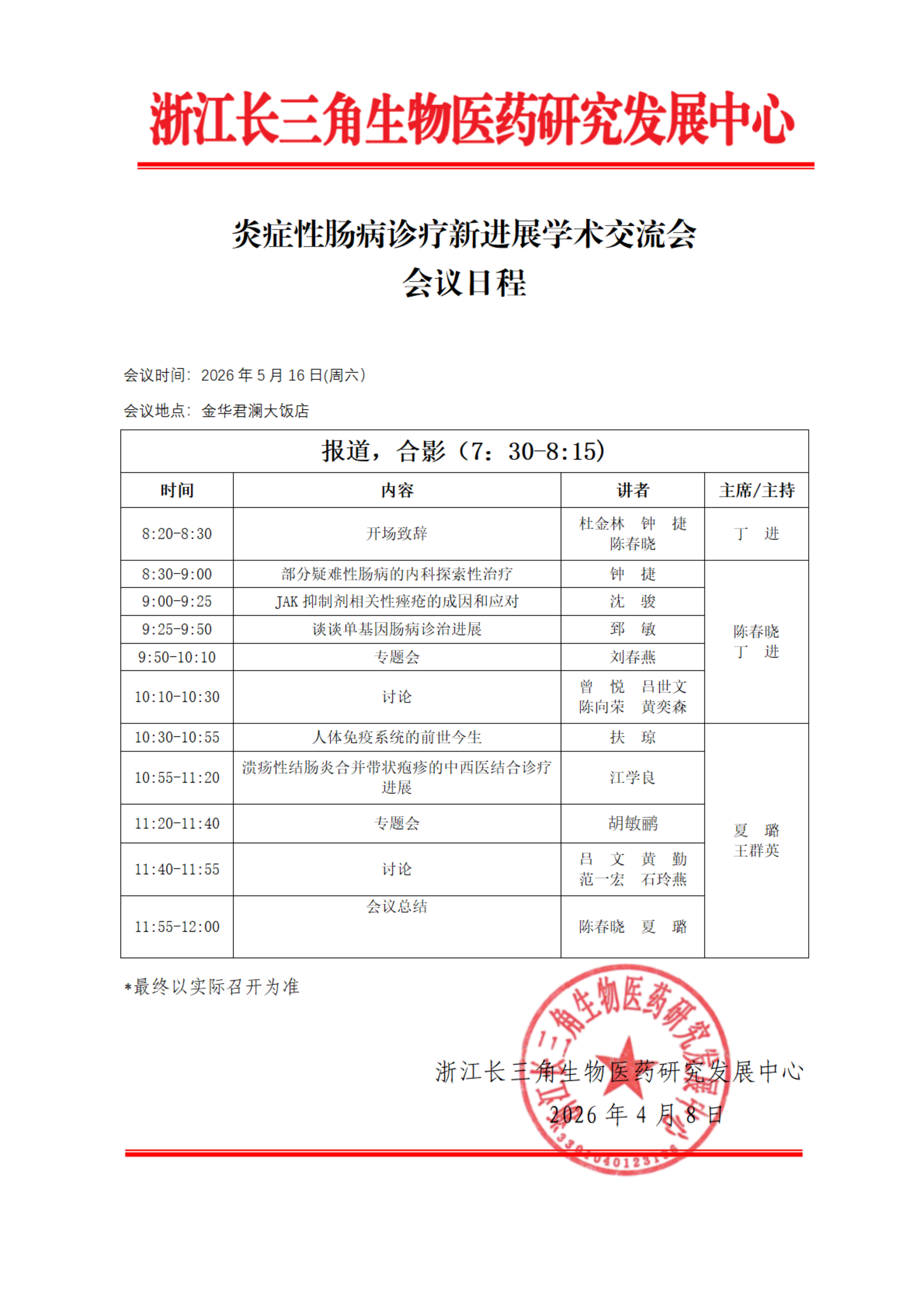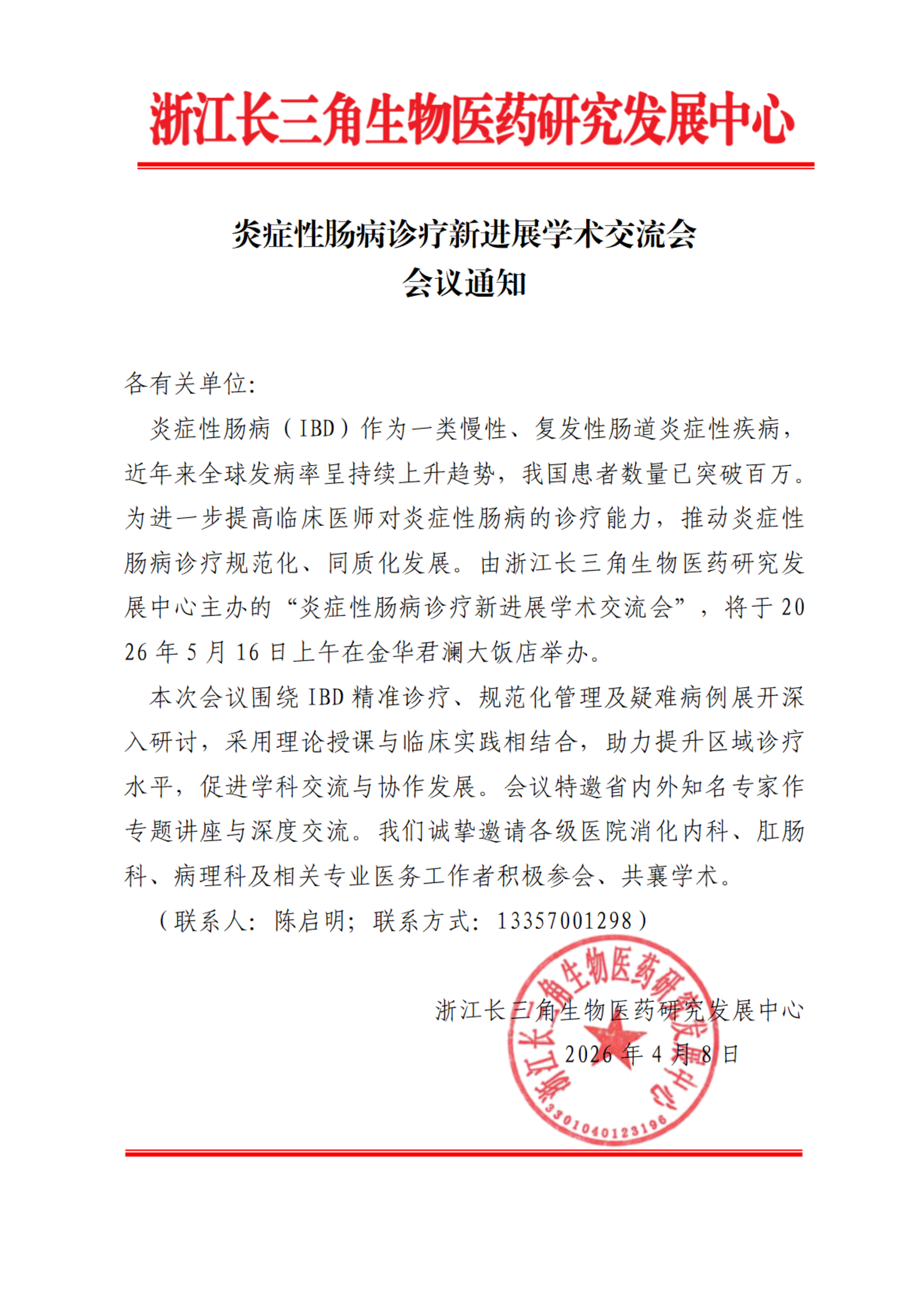关于召开2026年“炎症性肠病规范化诊疗学术交流会”学术会议的通知